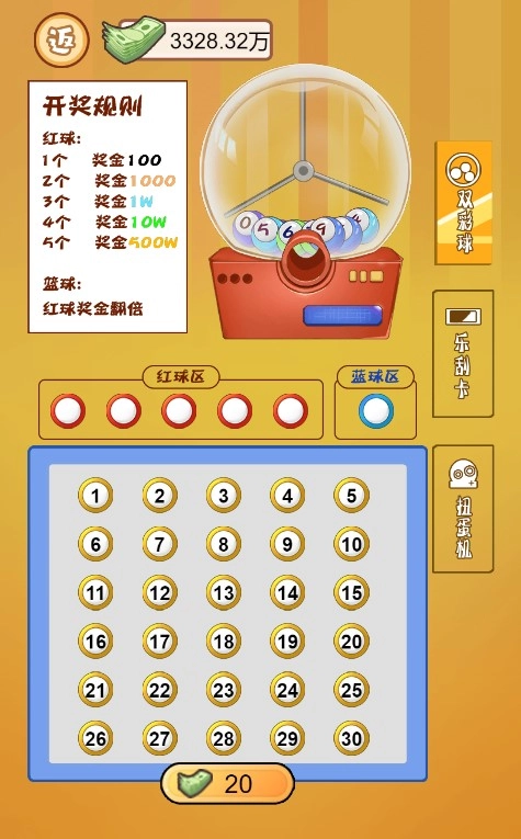 玩法:挑选六个数字作为抽奖号码,次日(具体时间)开奖