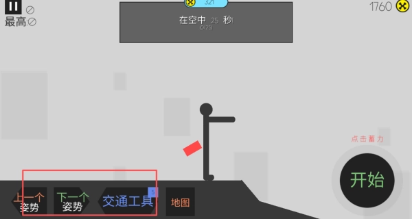 1、点击并长按右侧的开始按钮进行蓄力,松开按钮后,布娃娃会向下坠落,同时开启摔跤过程。