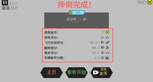 3、操控载具时,提前规划撞击路径,瞄准场景里的建筑或道具,利用反弹力让布娃娃获得更多翻转和飞行的空间。