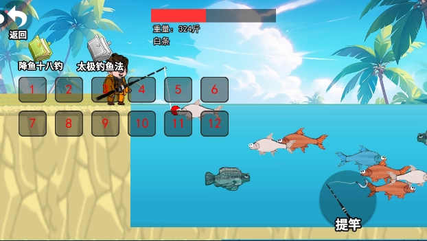 2、可选用降鱼十八钓与太极钓鱼法这两种方法来钓鱼。