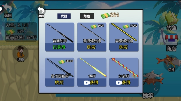 4、别忘了去添置些新装备,这样你就能钓到更大的鱼啦!