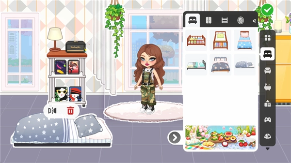 5、这里同样设置了三个场景,衣柜内也备有衣物可供给娃娃更换,之后便可着手为娃娃进行护肤美容护理。