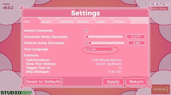 点击下拉菜单选择中文(简体),接着点击右下方的“return”按钮,语言就会重置为中文了。