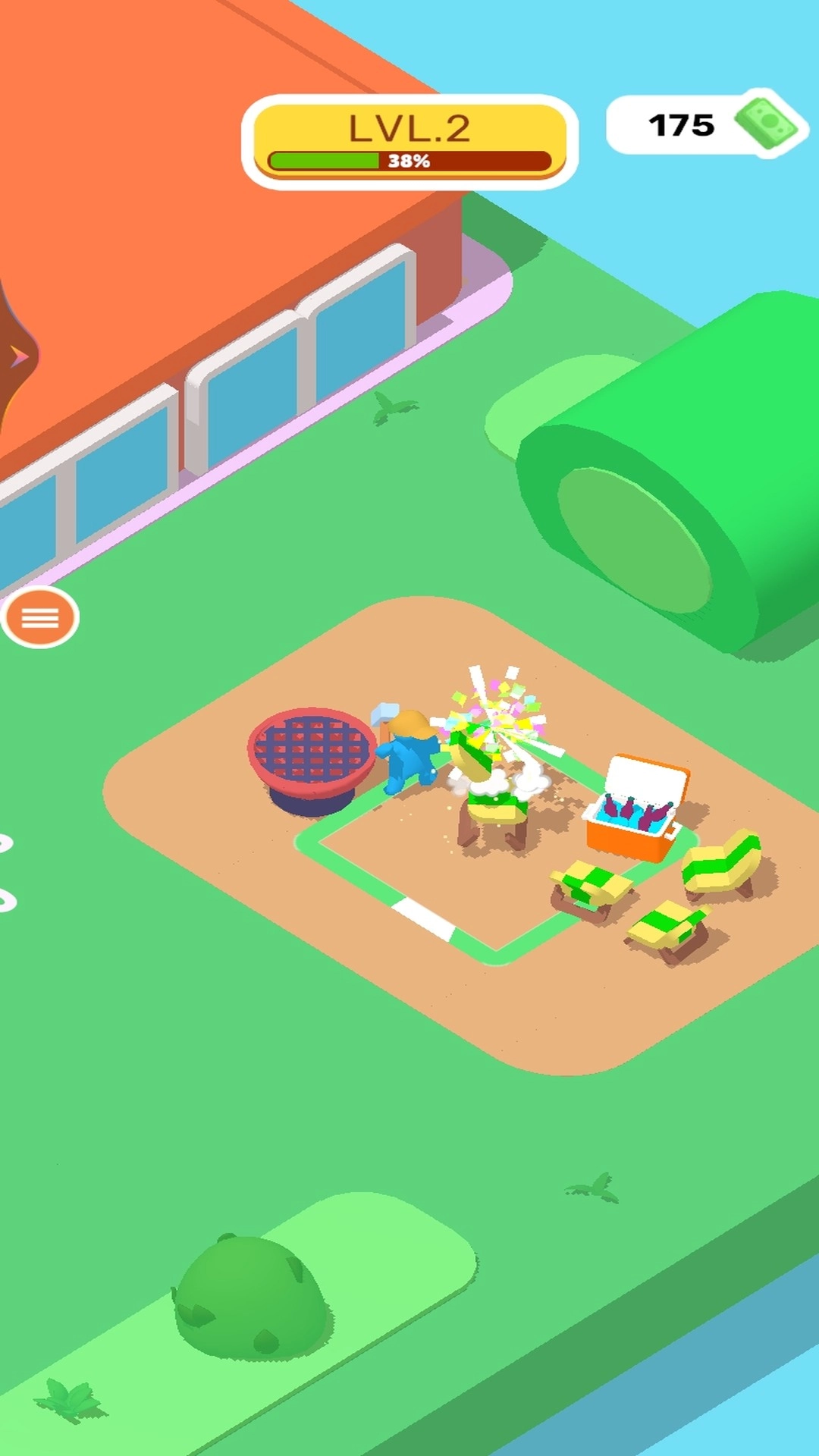 1、在房间里来回穿梭,持续搭建你的小屋,赚取丰厚的钞票,提升效率。