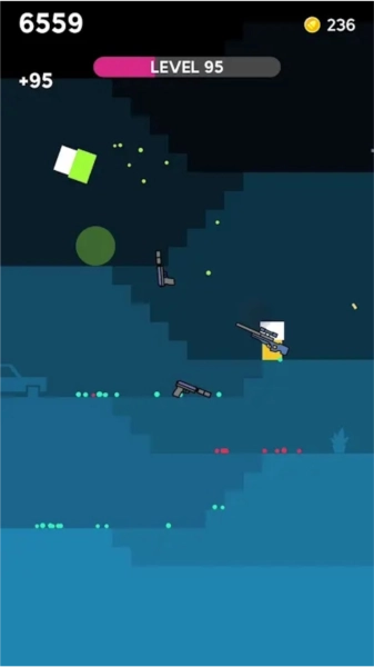 1、枪械会自动进行上下摆动,玩家需要在瞄准的时机点击屏幕来发射子弹。