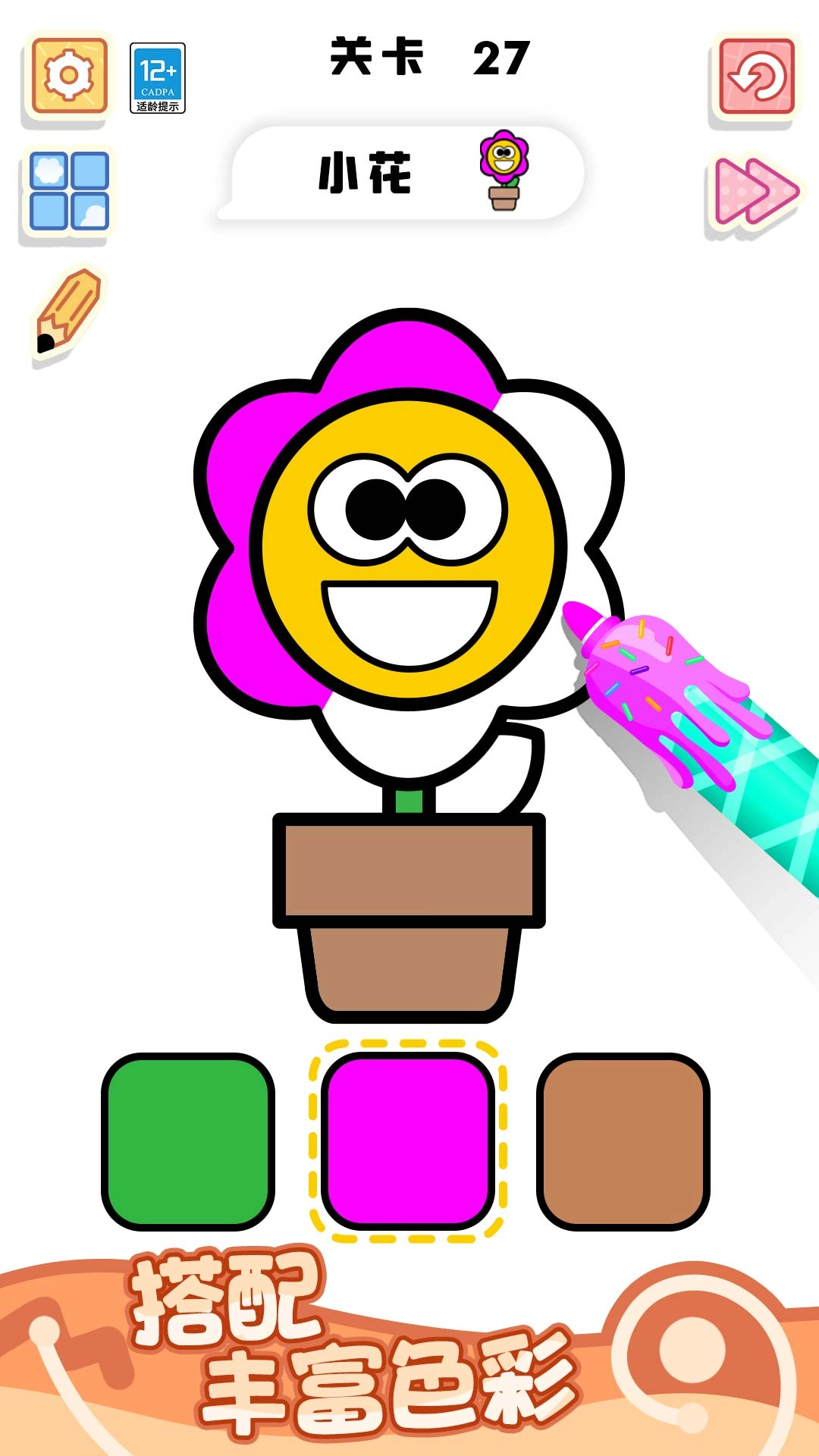 1.以“观察—匹配—填色”作为核心机制,把色彩辨识和手眼协调融入简洁的流程之中,打造出独特的闯关体验。