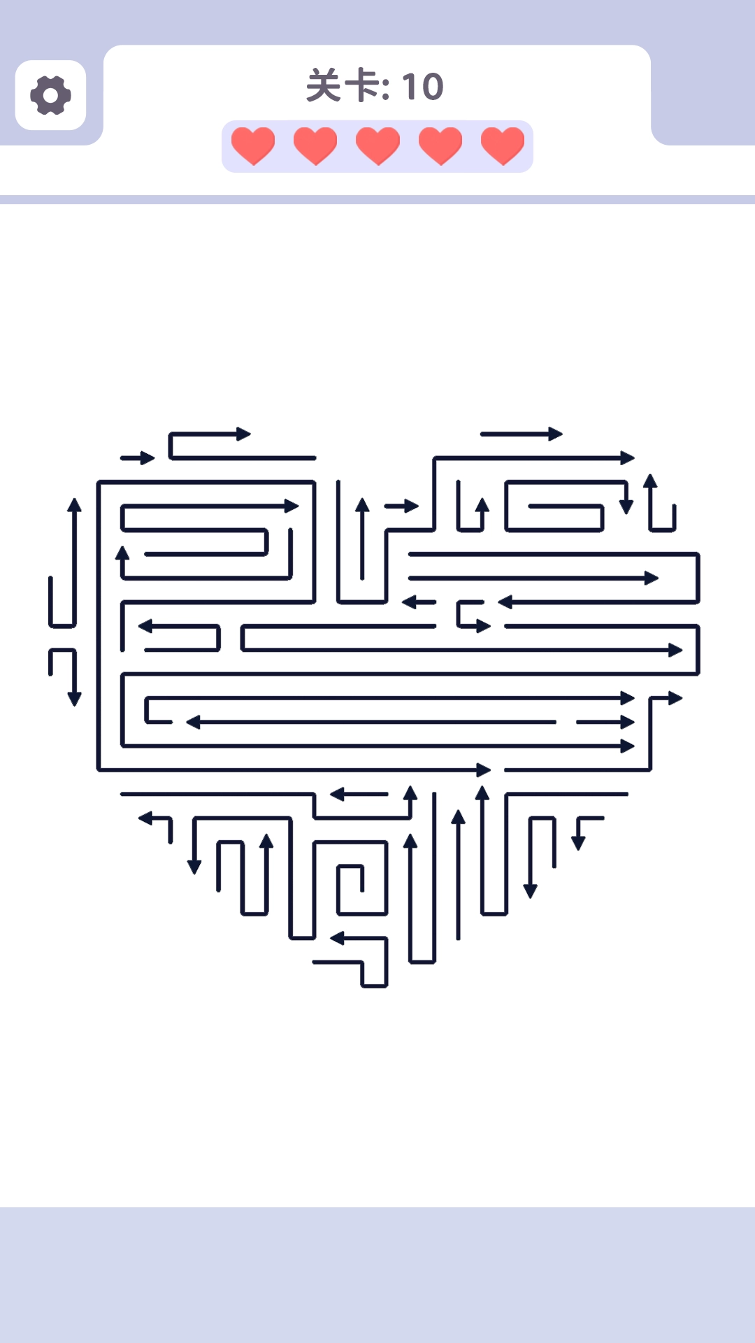 2、需遵循“点击箭头移动”规则:先找到迷宫里的箭头,点击后箭头会顺着自身指向移动,优先挑选路径无阻碍的箭头,逐步清除迷宫中的箭头元素。