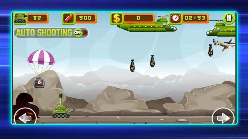 2、通过屏幕上的虚拟摇杆来操控坦克移动,巧妙避开从空中落下的炮弹。