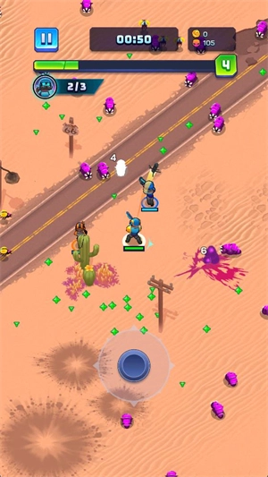 2、进入地图后,通过滑动摇杆能够操控角色移动,角色会自动对出现的虫子发起攻击。