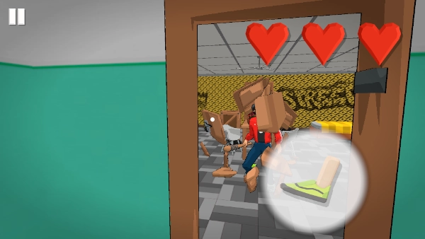 2、在操作界面中,通过在左侧区域随意滑动屏幕,能够操控人物进行移动;右侧区域则用于控制人物使用脚部攻击敌人。你需要操控人物移动至门的位置,然后将门踹开。