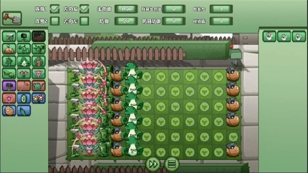 4.将左侧的植物拖动到战场的格子中,通过合理搭配不同种类的植物来构建起防线。