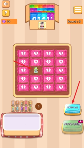 4、正式开始后,点击任意盲盒即可开启,也可以点击右下角的“openall”直接全部开启。