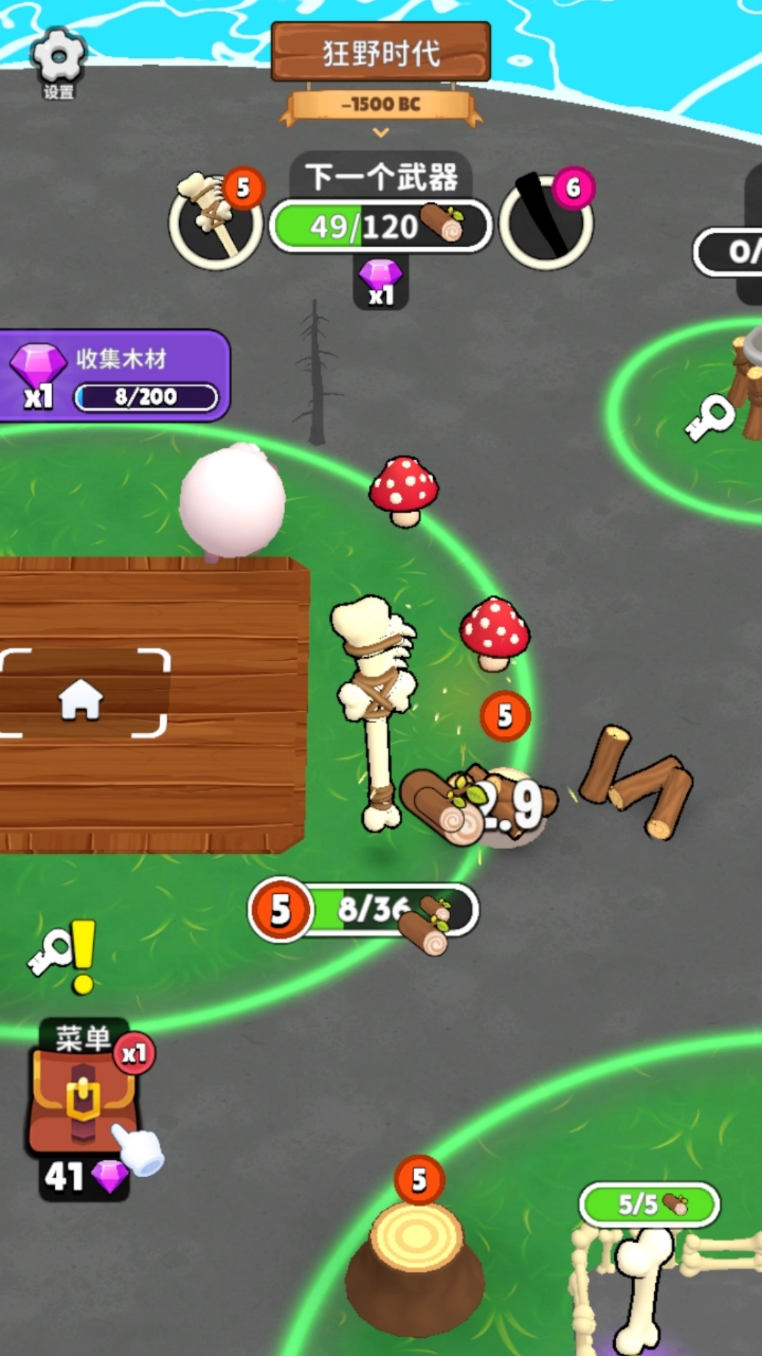 2、持续收集骨头、木材等重要资源,解锁并升级骨镐这类基础工具,为应对更艰巨的挑战做好准备。