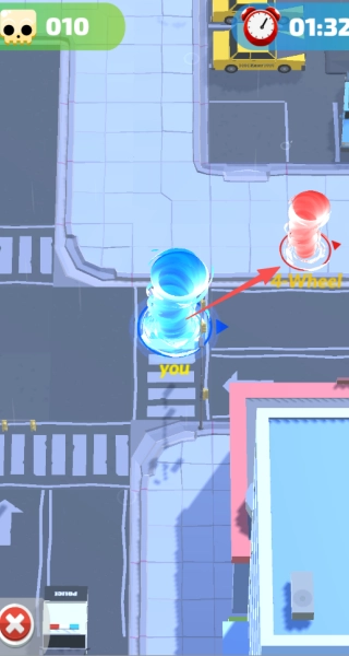 4、要时刻留意体型更庞大的龙卷风,防止被它卷走淘汰,一旦被淘汰也能迅速复活,重新回到战场继续战斗。