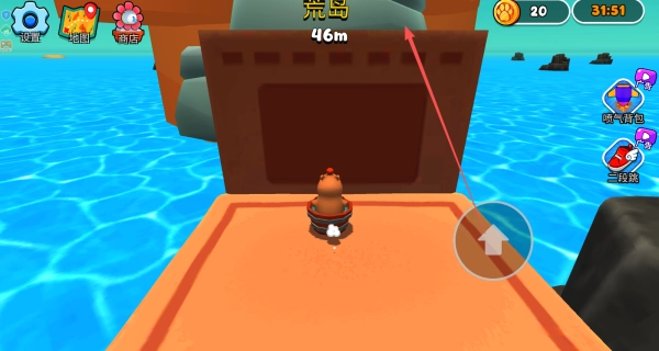 2、遇到台阶时,点击跳跃按钮帮助角色向上跳跃。