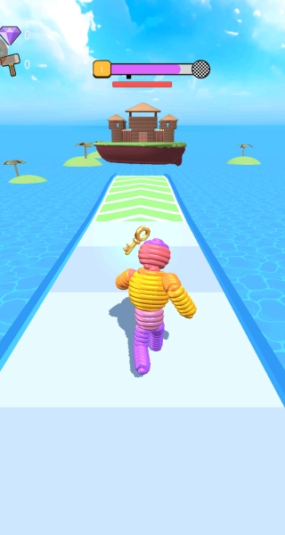3、随着收集的毛线不断增加,毛线人会逐步变得更强,而在终点处撞击碉堡的力量也会随之同步增强。