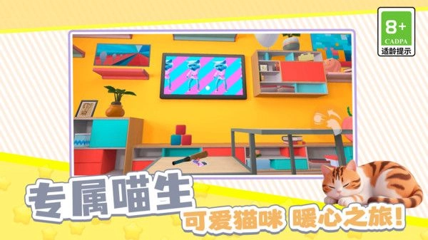 1、从猫咪的视角出发营造沉浸式体验,无论是低矮的家具缝隙,还是高处的窗台,场景细节都贴合猫咪的生活习性,跑跳时还能感受到如同毛绒触感般的画面反馈。
