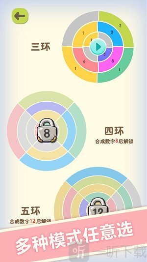 玩家需要不断合成数字来完成目标任务,游戏画风简约,搭配着十分欢快的背景音乐,能让玩家展现个人的操控能力,而且每一局的难度各不相同,玩家可以自由选择。