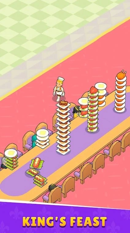 King'sfeast是一款趣味十足的休闲游戏,让你尽情玩转厨房:听着切菜时“咚咚咚”的清脆节奏,感受炒菜时“滋啦滋啦”的热闹声响,闻着烘焙时烤箱飘出的甜香,体验腌制时给食材按摩入味的小乐趣。只需跟着任务清单一步步操作,就能解锁一道又一道香气扑鼻的美味佳肴。
