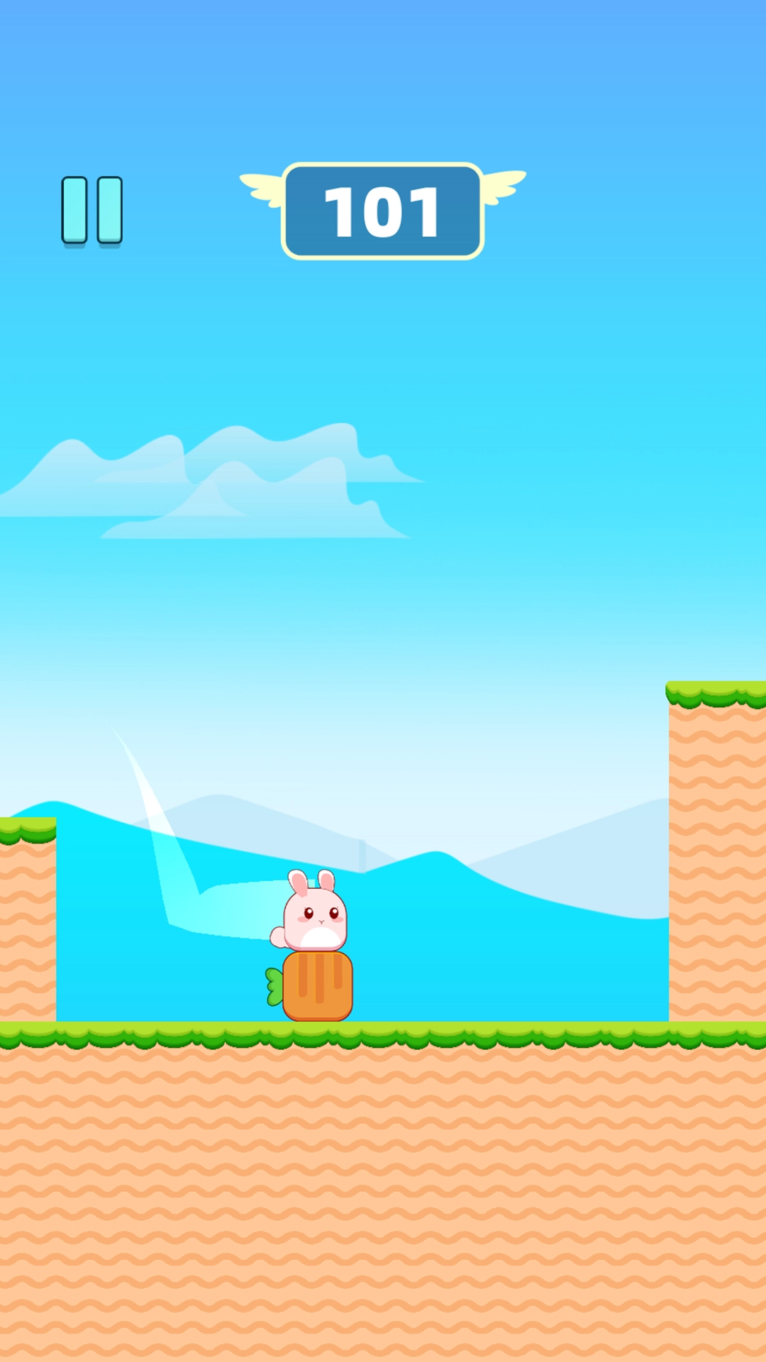 玩家需要通过触屏来不断操控兔子越过悬崖