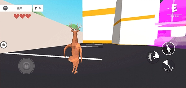 《进化的鹿模拟器》是一款魔性沙雕风的开放世界模拟游戏。玩家将操控一只外形滑稽、动作夸张的鹿,在城镇中自由探索、肆意破坏,还能与各类动物和NPC互动。这只鹿不仅能直立行走、伸长脖子,还能使用武器、驾驶载具、召唤机甲,通过持续进化解锁更强的形态与能力。游戏画面卡通搞怪,物理效果荒诞有趣,没有固定任务限制——想捣乱就捣乱,想战斗就战斗,尽情做一只释放压力、自由玩耍的鹿吧!
