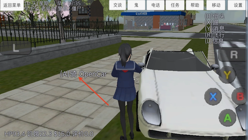 1、第一步先找到一辆停在路边的汽车,当靠近车辆时会显示“A骑”;
