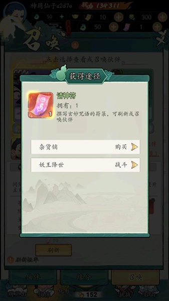 1、在召唤伙伴的界面里,每次会有3只伙伴呈现,使用请神符能够刷新当前显示的伙伴。