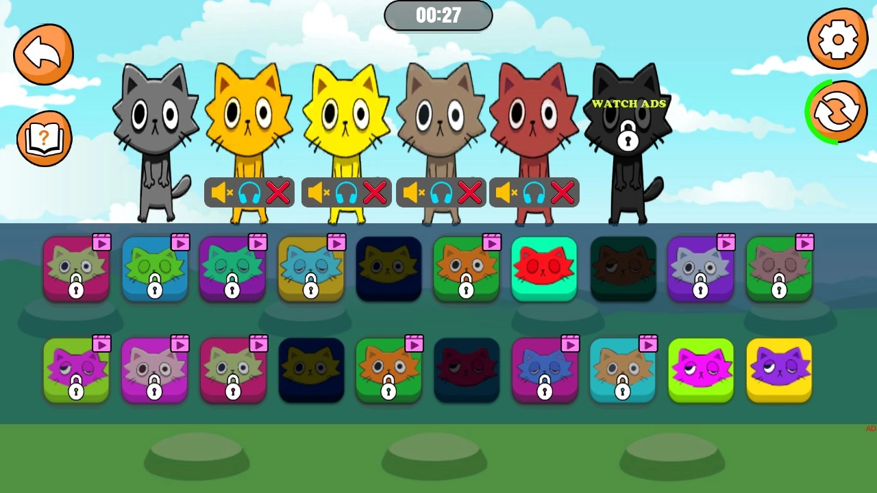 5、给猫咪都换上装饰后,他们就会演奏一首节奏。