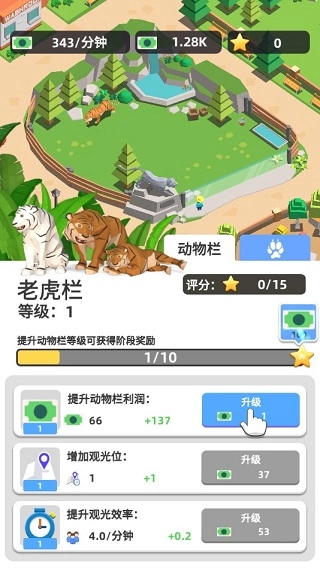 升级动物栏既能增加其收益,还能解锁更多趣味动物。