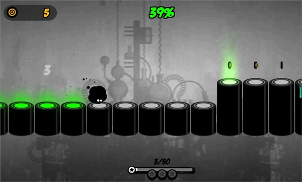 游戏初期会引导玩家完成5次完美着陆的任务。其中的关键是留意背景音乐的鼓点,同时观察小墨球的下落路径。只有当小墨球的弹跳频率和音乐节奏完全匹配时,才是点击的最佳时刻。一定要保持两者同步,不然就很难完成目标。