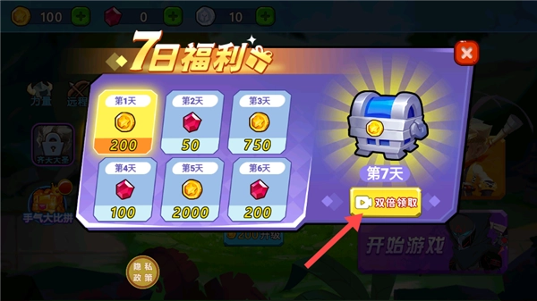 2、注意【7日福利】活动,每天登录可领取相应奖励(比如金币、钻石),第7天点击【双倍领取】能获得更多资源。