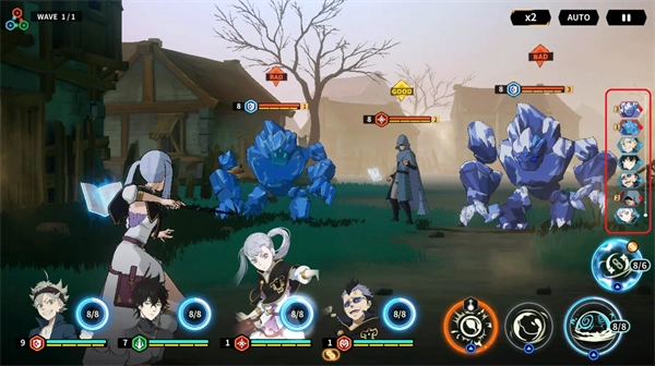 战斗将按照「行动顺序」展开,右侧的「行动条」能够让你查看回合的先后次序。