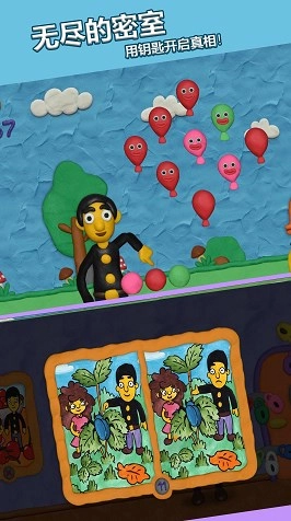 橡皮泥人对世界充满好奇,总爱去各类展览和博物馆探索。这一次,爸爸带着丽莎走进了美术馆。馆内一幅幅精美的油画让人目不暇接!可麻烦的是:爸爸只顾着沉浸在画作中,没留意闭馆时间,结果我们的小主人公被困在了美术馆里。要帮助他们脱困,玩家得调动观察力、理解力、记忆力、阅读能力,还有逻辑思维、逆向思维、应变能力和反应能力才行。