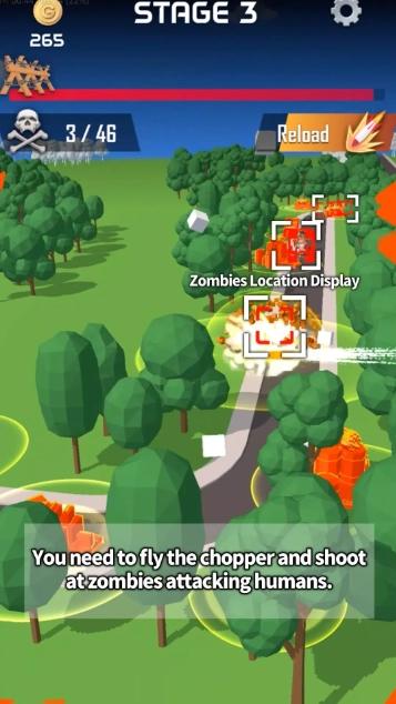 1、操控你的直升机,用手中的武器消灭围攻人类的僵尸,体验最畅快解压的射击快感。