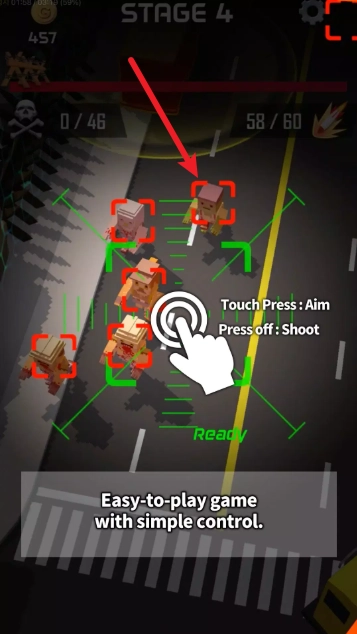 1、中拖动屏幕即可瞄准敌人,点击即可射击。