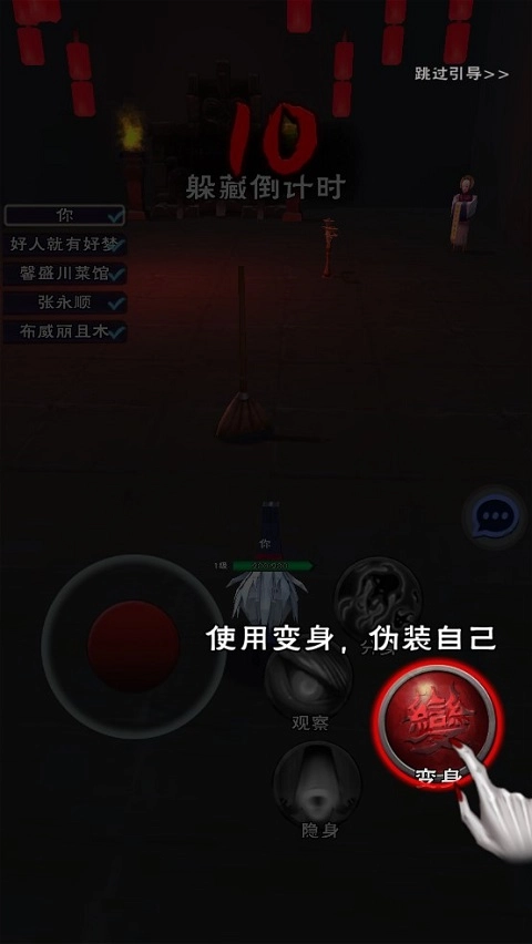 1、在躲猫猫模式的特定关卡中,玩家会分别扮演鬼王与小鬼两个角色。小鬼能够伪装成场景内的任意物品,还可以借助隐身、分身等技能来干扰鬼王的判断;而鬼王则要在规定时间内找出所有隐藏的小鬼,这样就能赢得胜利。