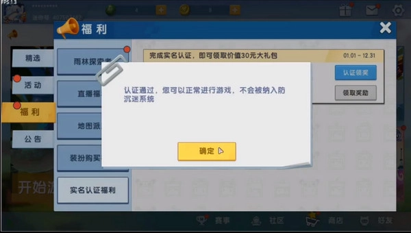 5、认证成功后,别忘了回到页面领取专属的实名礼包,里面有稀有道具和资源奖励。
