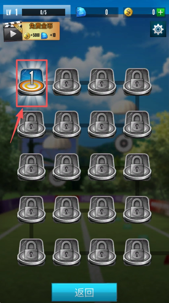 2、选择关卡并点击。在关卡选择界面,点击首个已解锁的关卡进入。