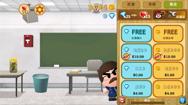 《暴打老板2》是一款主打宣泄解压的休闲益智游戏,核心设计初衷便是帮助玩家释放内心积压的负面情绪。游戏开篇,场景定格在一间普通的高中校长办公室里,玩家面对的正是那位长期拖欠工资的老板,他还拿游艇账单没结清当借口来敷衍搪塞。当怒火在胸中熊熊燃起,一场畅快的反击便正式拉开序幕——你能毫无顾忌地挥拳,把积攒已久的不满与愤懑,一股脑儿地发泄在这位讨厌的上司身上。