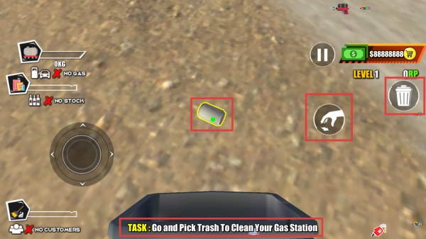 2、完成垃圾桶的购置后,按照下方的任务要求,把加油站内的所有垃圾都捡拾到垃圾桶里。