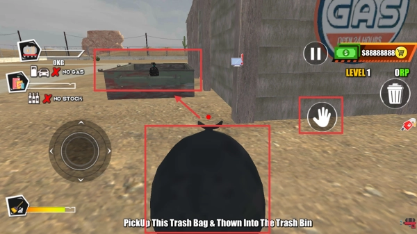3、清理完垃圾后,把垃圾袋拿起来扔进垃圾回收箱,玩家要按照任务经营自己的加油站,尽情沉浸在其中的乐趣里吧。