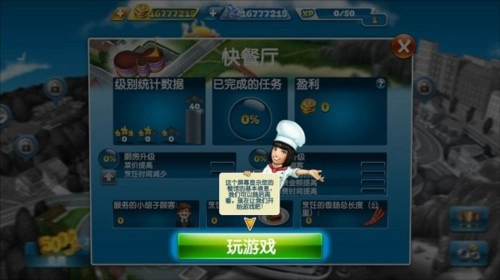 进入游戏后,首先要选择店铺的地点。店铺地点需要逐步解锁,新玩家只能选择第一个位置。进入后会看到一些餐厅相关的介绍,玩家需要选择关卡,每个餐厅都有几十个关卡。只有进入关卡,游戏才真正开始。游戏有两个可切换的场景,这也是它区别于其他实操类烹饪游戏的一大特色:一个是厨房内部,另一个是餐厅内部。厨房内部是盈利的核心区域,也是玩家需要实际操作的部分;餐厅内部则用于为顾客提供良好环境,从而延长他们的等待时间,在收益方面能获得更多小费。