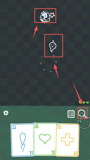 2、每张卡牌都有清晰的功能定位,绿卡负责回血以保障续航能力,蓝卡主打稳定输出进行持续打击,红卡则凭借爆发伤害实现清场效果,三者相互配合构建出完整的战斗循环,让策略层面的层次感得到进一步增强。