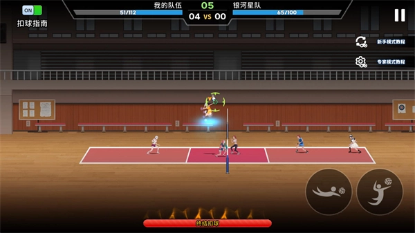 3、进入关卡后角色会自动接球,玩家只需控制角色进行扣球和发球操作即可。