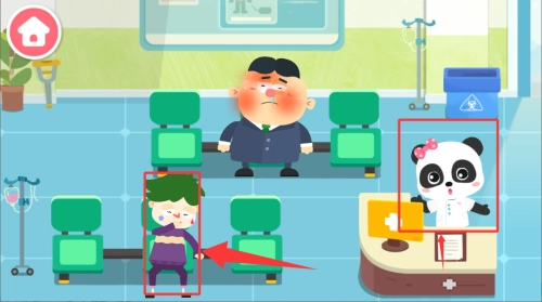 3、在医院场景中选择绿发就诊人物,开启诊疗流程。