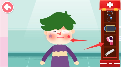 4、利用界面右侧的医疗器具,借助体温计等工具开展检查操作。