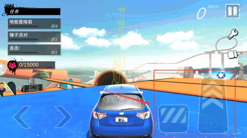 操作模式采用“虚拟方向盘+按键”的组合,左下角的虚拟方向盘用于控制赛车转向,右下角则配备了油门、刹车、手刹三个功能按键。