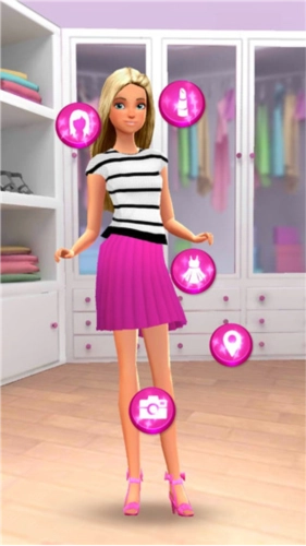 1、角色:在芭比时尚衣橱里,协助时尚的Barbie、Nikki、Rene、Teresa以及她们的朋友们打造既可爱又时尚的造型。