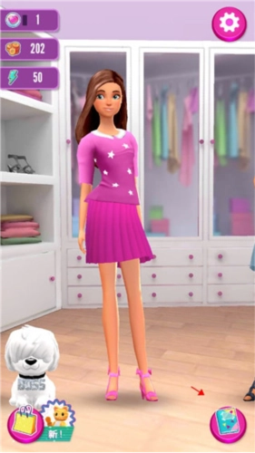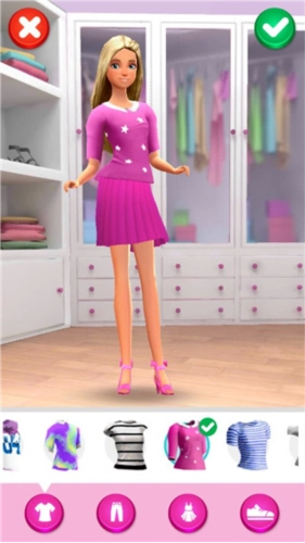4、在芭比时尚衣橱里,你可以利用上百种服装搭配,打造专属于自己的时尚造型。