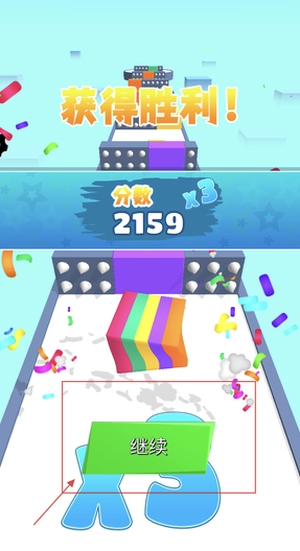4、成功抵达终点并取得胜利后,点击继续按钮,开启下一轮挑战,逐步提升操作熟练度。
